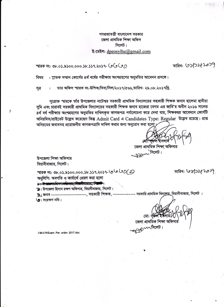 পরীক্ষার অনুমতি